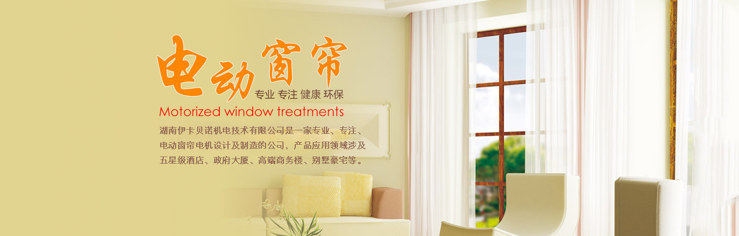 湖南伊卡貝諾機(jī)電技術(shù)有限公司是一家專業(yè)、專注、電動(dòng)窗簾電機(jī)設(shè)計(jì)及制造的公司,產(chǎn)品應(yīng)用領(lǐng)域涉及五星級(jí)酒店、政府大廈、高端商務(wù)樓、別墅豪宅等。